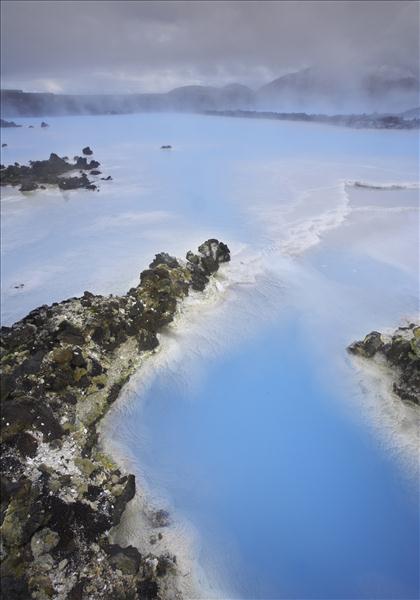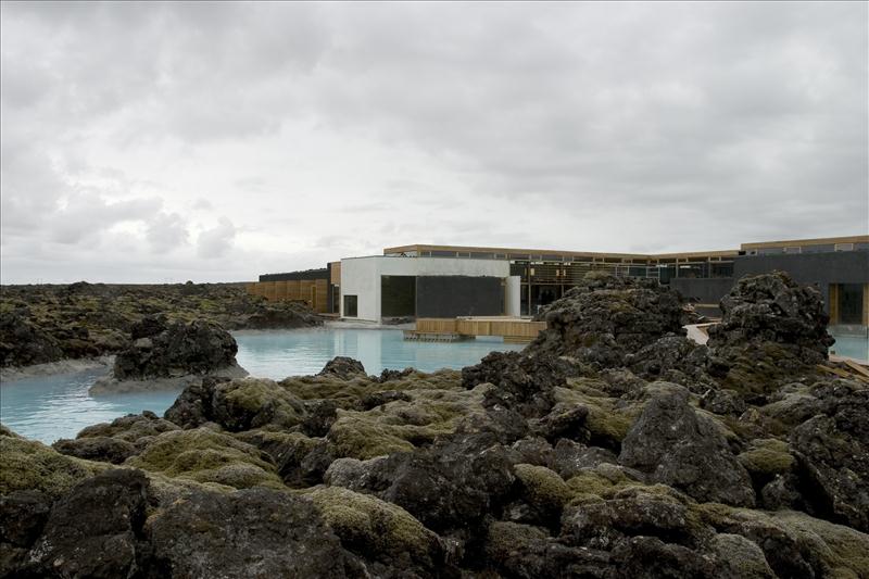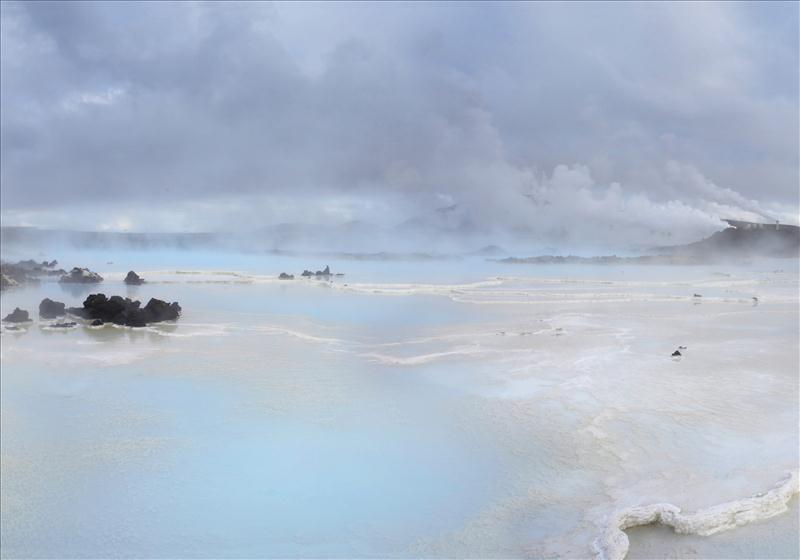 Mineral-rich geothermal wastewater collected in the surrounding lava fields,