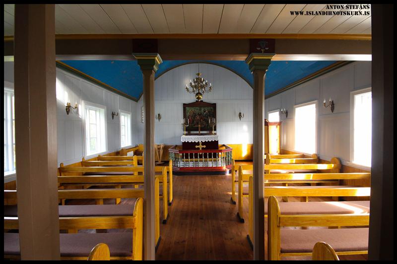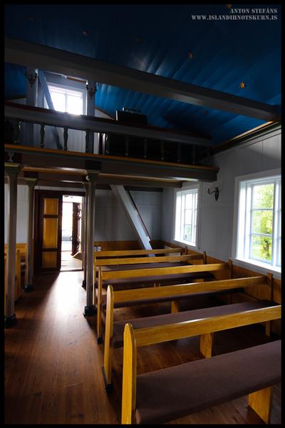 Að framkirkju eru spjaldsettar vængjahurðir og gangur inn af þeim og bekkir hvorum megin hans. Tvær innstu bekkjaraðirnar eru styttri en aðrir kirkjubekkir. Söngloft er yfir fremsta hluta framkirkju og stigi við framgafl norðan megin. Veggir eru klæddir spjaldaþili og borðaklædd hvelfing er yfir kirkjunni stafna á milli.