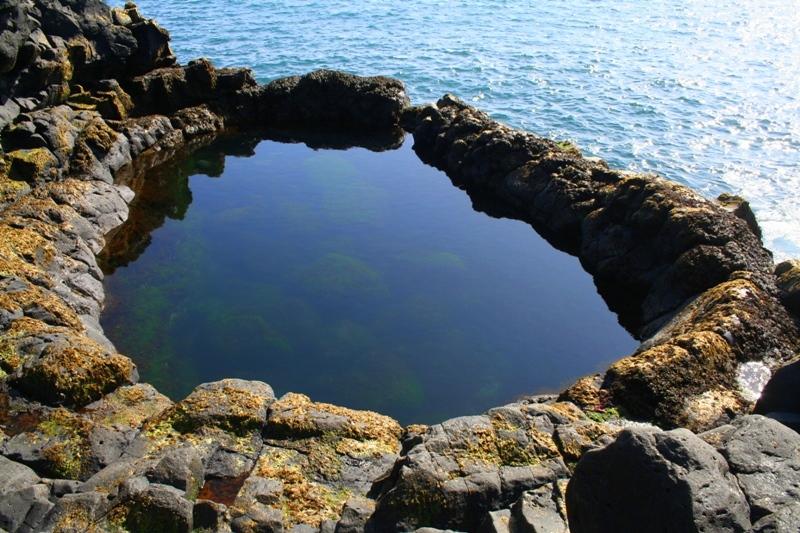 Hann er náttúrulegur ker í klettum við sjó.