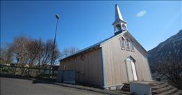 Kirkjan stendur í Búðum og er vinsæll viðkomustaður.
