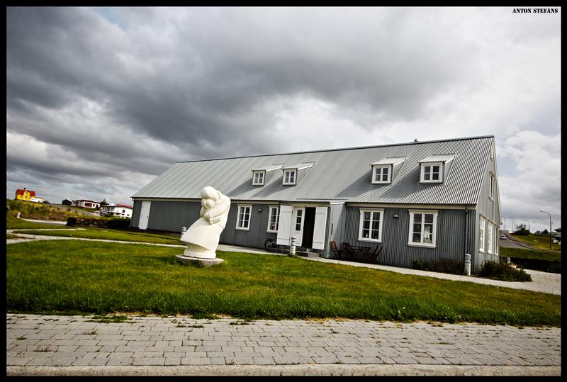 At a short distance from the village is Eiríksstaðir, the homestead of Erik the Red, who discovered Greenland and whose son Leif Erikson, born at Eiríksstaðir, discovered America ahead of Columbus.