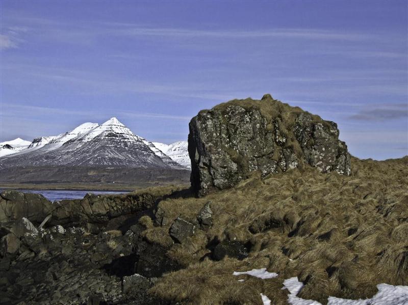 About 700 meters east of Búlandstindur lies a mountain ridge known as Goðaborg. According to local legends, people carried their pagan idols there shortly after the Christianization of Iceland and threw them from the cliffs. Other sources describe Goðaborg as a broad, flat rock platform high on the northeastern side of the mountain. Folklore tells of a nearby water source and ritual offerings made to the gods in hopes of prosperity and peace.