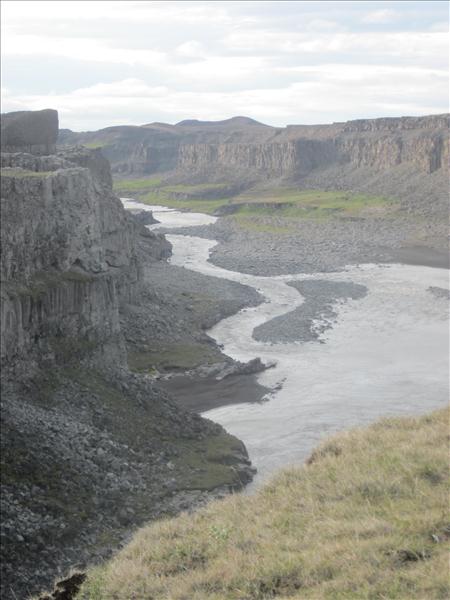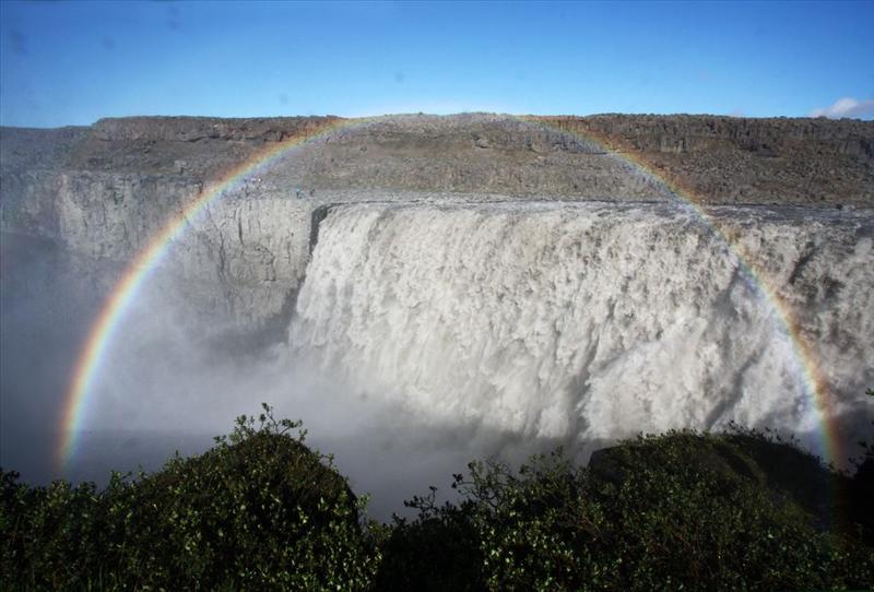 Nearby are several other remarkable waterfalls. Upstream lies the elegant Selfoss, known for its wide horseshoe-shaped cascade, while downstream is the powerful Hafragilsfoss, which drops into a narrow and rugged gorge.