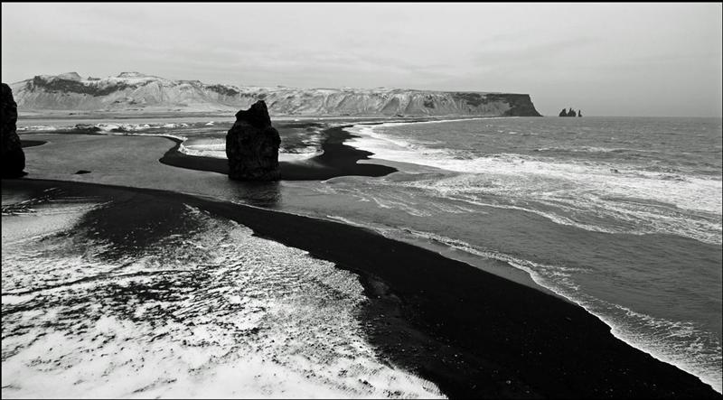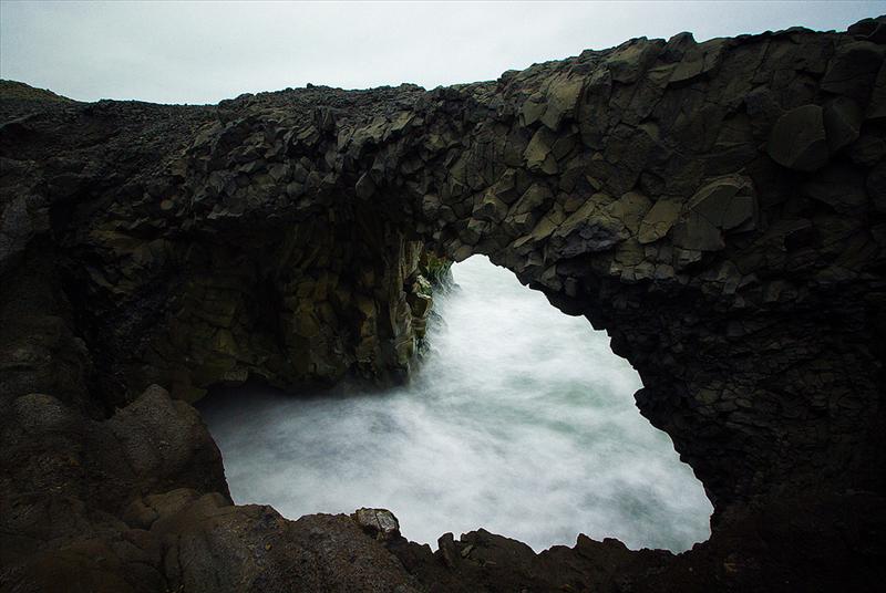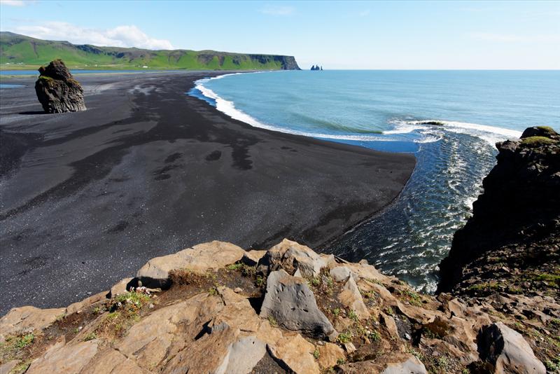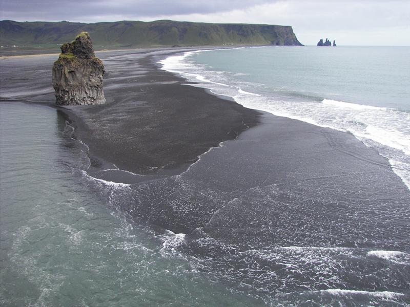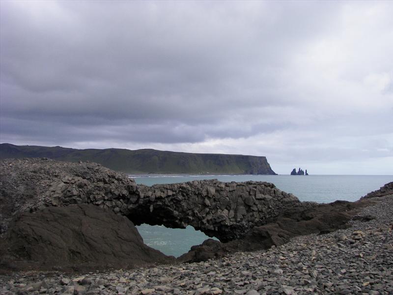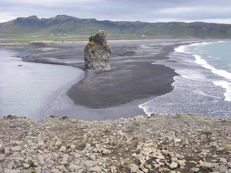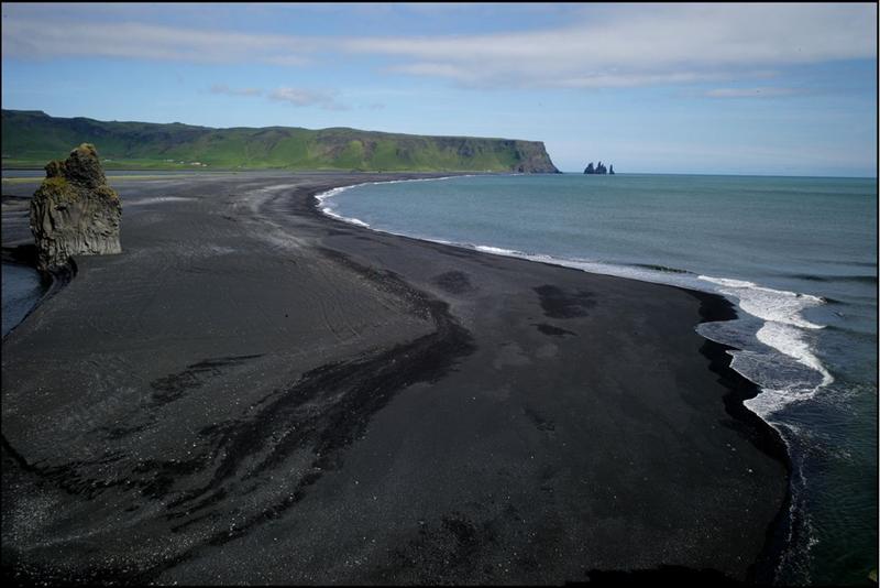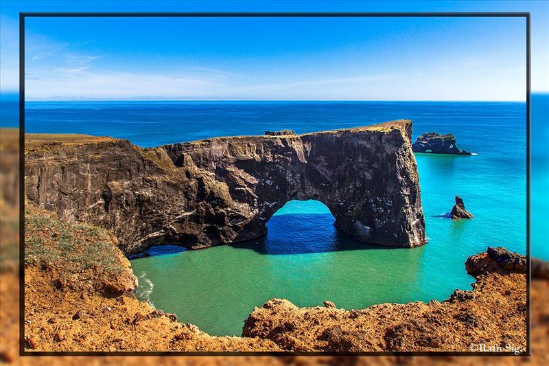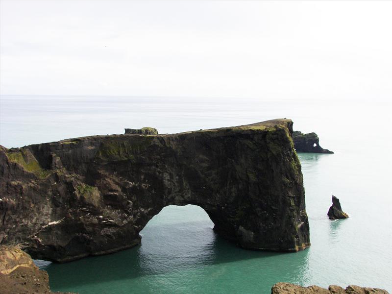 The view from Dyrhólaey is interesting: To the north is to be seen the big glacier Mýrdalsjökull. To the east, the black lava columns of the Reynisdrangar come out of the sea, and to the west the whole coastline in the direction of Selfoss is visible - depending on weather conditions. In front of the peninsula, there is a gigantic black arch of lava standing in the sea, which gave the peninsula its name (meaning: the hill-island with the door-hole).