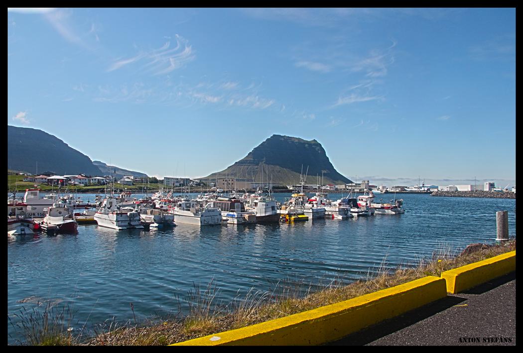 Grundarfjörður is a small town, situated in the north of the Snæfellsnes peninsula in the west of Iceland. It is situated between a mountain range and the sea. The nearby mountain Kirkjufell forms a small peninsula.