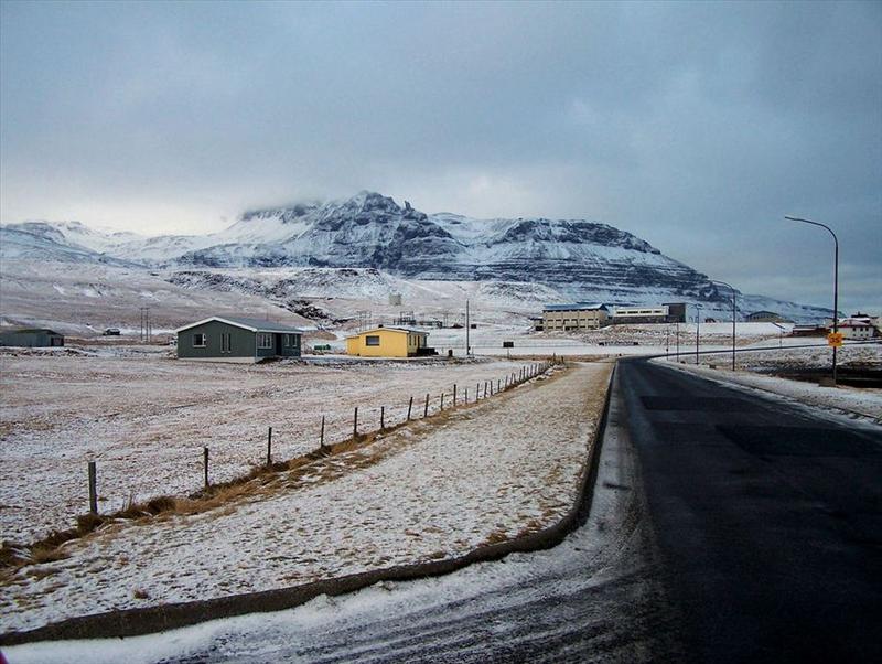 The road to nearby Stykkishólmur crosses a big lava field, called Berserkjahraun. The name of the lava field comes from the Eyrbyggja saga, according to which two Berserkers were slain here by their master, because one of them fell in love with his master's daughter.