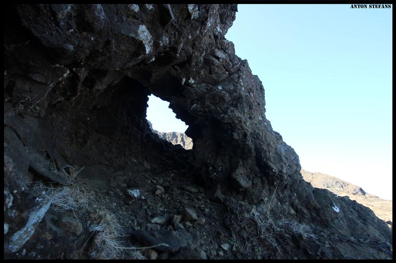 descends through a large and impressive natural stone arch.