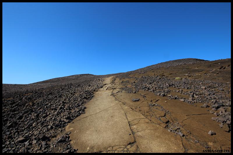 The route crosses smooth lava fields to the northeastern slope, which