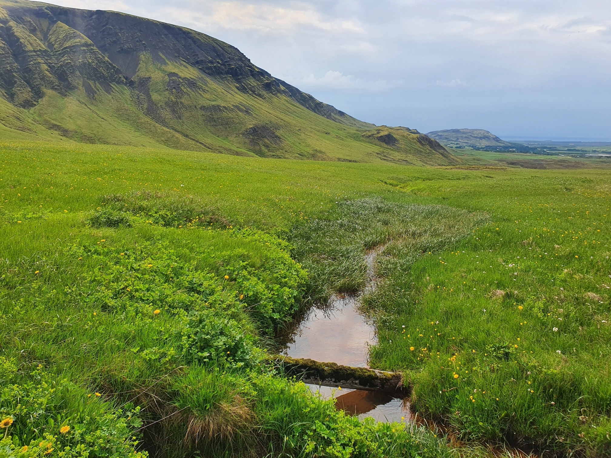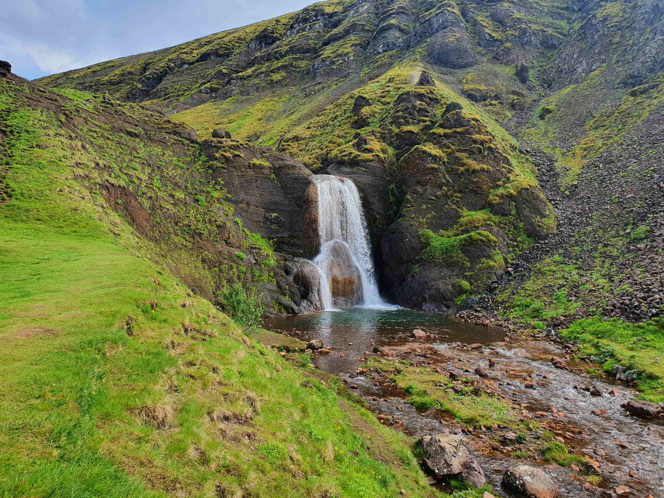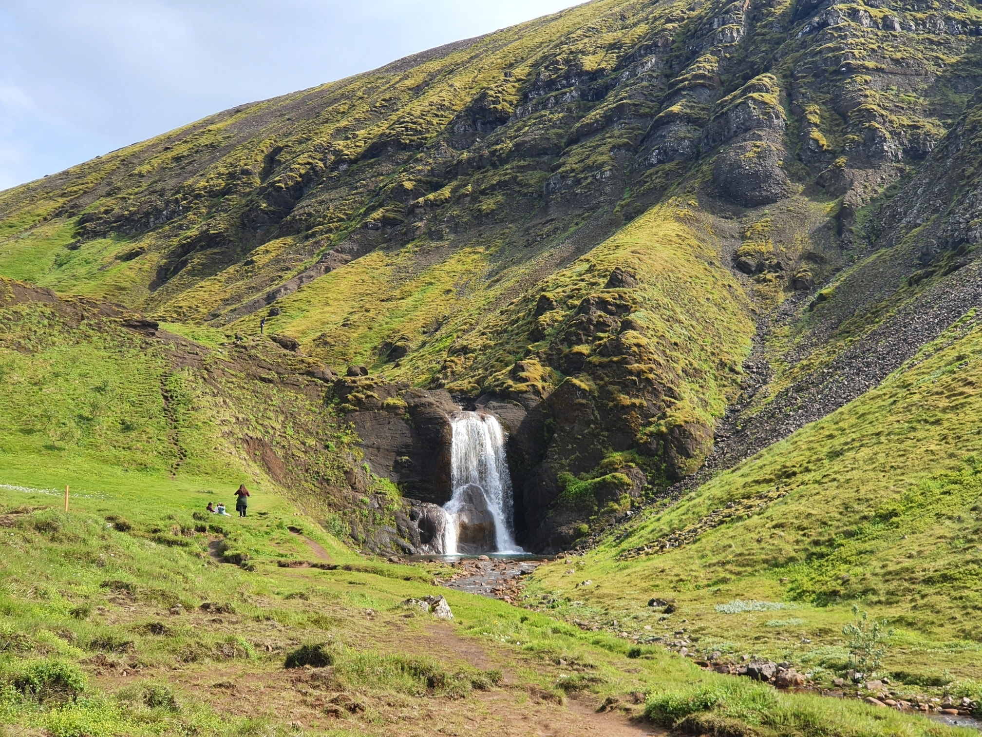 The surrounding area is calm and inviting, offering pleasant views of the nearby countryside. Helgufoss is an ideal stop for those who want to enjoy Icelandic nature without traveling far from the capital area.