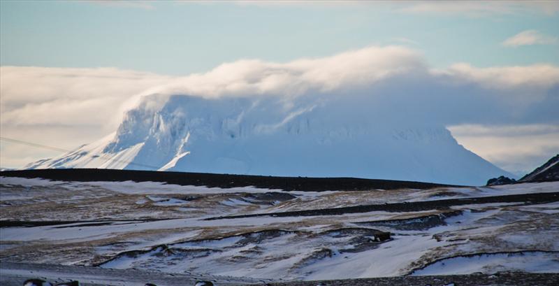 The mountain was formed during a volcanic eruption beneath a glacier, and lava