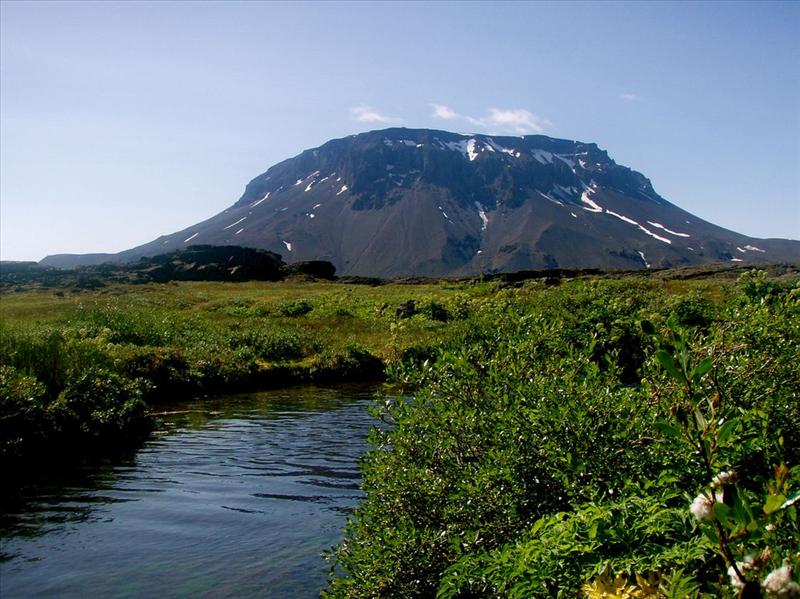 mountain, the springs, and the surrounding lava fields creates a striking and