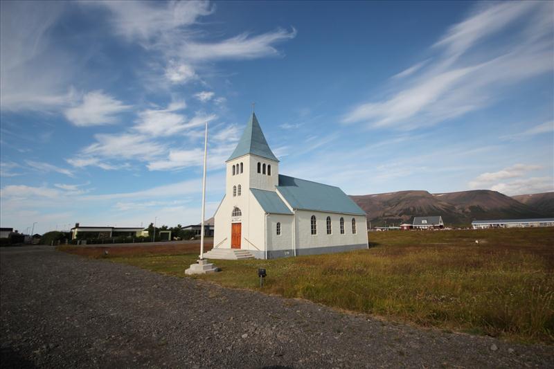 views of the fjord, Hofsóskirkja is a unique cultural and spiritual landmark