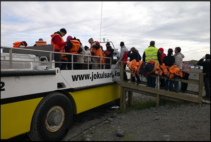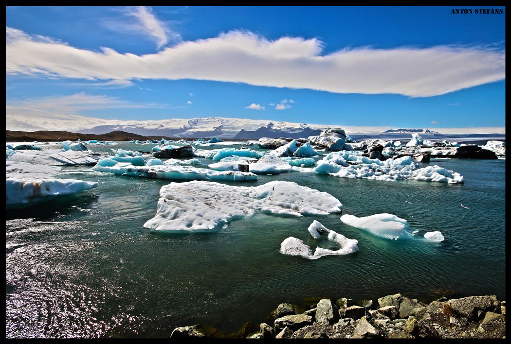 Jökulsárlón is a large glacial lake in southeast Iceland, on the borders of Vatnajökull National Park. Situated at the head of Breiðamerkurjökull, it developed into a lake after the glacier started receding from the edge of the Atlantic Ocean. The lake has grown since then at varying rates because of melting of the Icelandic glaciers. The lake now stands 1.5 kilometres (0.93 mi) away from the ocean´s edge and covers an area of about 18 km2 (6.9 sq mi). It recently became the deepest lake in Iceland at over 248 metres (814 ft) depth as glacial retreat extended its boundaries. The size of the lake has increased fourfold since the 1970s. It is considered as one of the natural wonders of Iceland.One can see the lake from along Route 1 between Höfn and Skaftafell. It presents a picturesque parade termed as “A ghostly procession of luminous blue ice-bergs through the 17 km2 (6.6 sq mi) (18 km2 (6.9 sq mi) as reported in other sources) Jokulsarlon Lagoon”.Jökulsárlón has been a setting for four Hollywood movies -- A View to a Kill, Die Another Day, Tomb Raider and Batman Begins -- in addition to the reality-TV series Amazing Race.[3][6] In 1991 Iceland issued a postage stamp, with a face value of 26 kronur, depicting Jökulsárlón.The tongue of the Breiðamerkurjökull glacier is a major attraction for tourists. Tour operators conduct snowmobile and jeep tours to visit the glacier along the winding iceberg-studded Jökulsárlón. The base station for visits to the area is at Joklasel, which is approached from Hofn.