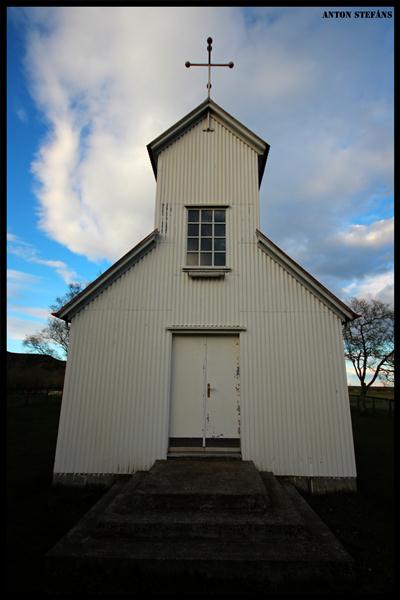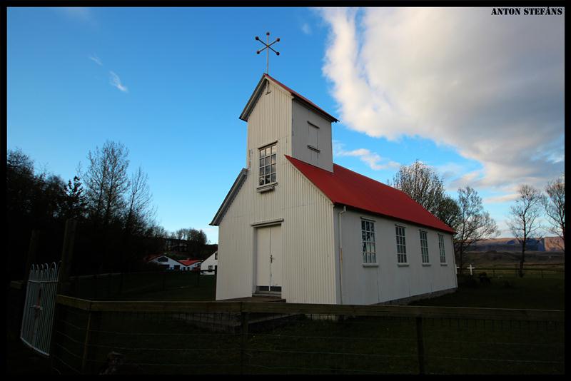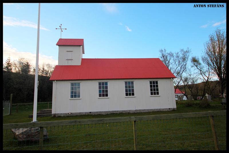 Kirkjan stendur í dreifbýli.