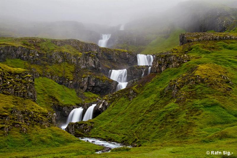 The waterfall row is a fine example of East Iceland’s natural character, where steep mountains, flowing water, and remote fjord landscapes come together in a powerful and scenic setting.