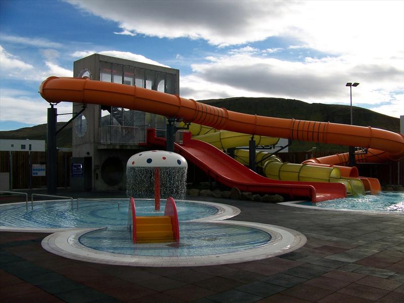 For added excitement, Lágafellslaug offers three water slides: one open slide
