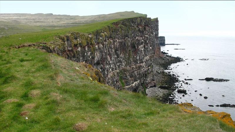 Látrabjarg the bird cliff in the Northwest. It is the largest sea cliff Iceland, 14 km long and 441 meters high. Látrabjarg in everyday speech is divided into four parts, called Keflavik Cliff, Látrabjarg Municipal Cliff and Breiðavík rescue. Látrabjarg has been farmed since the settlement. It is the westernmost point of Iceland.