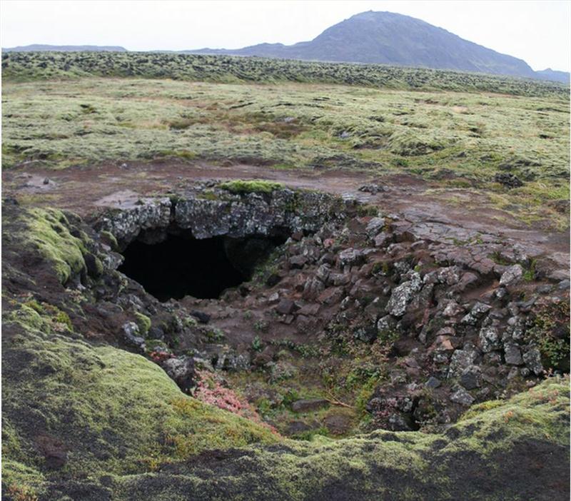 Leiðarendi is a very accessible lava cave and one of the best-known caves on the Reykjanes Peninsula. The cave is approximately 750 meters long and is located in a lava field close to Helgafell.