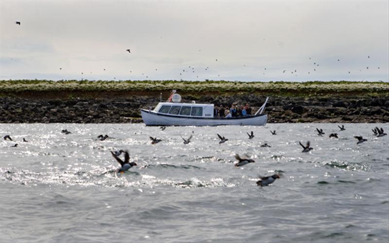 Sail to Puffin Island in comfort for a unique opportunity to observe this fun colorful bird in close proximity. When we arrive to the islands we turn off the engine so our passengers can observe the birds and our licensed guide tells all about the Puffins and other birds of interest that are often seen on the Puffin watching tours.