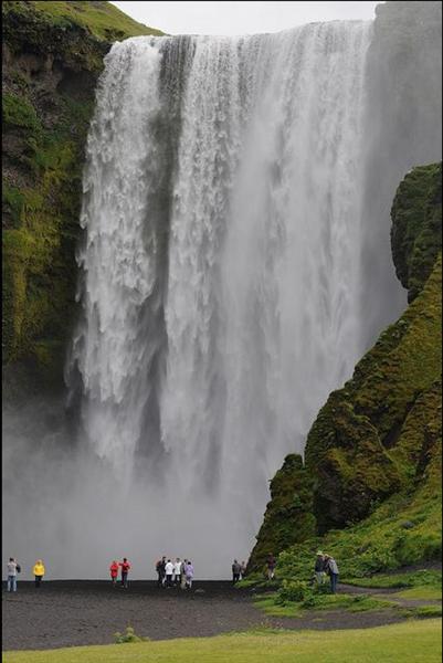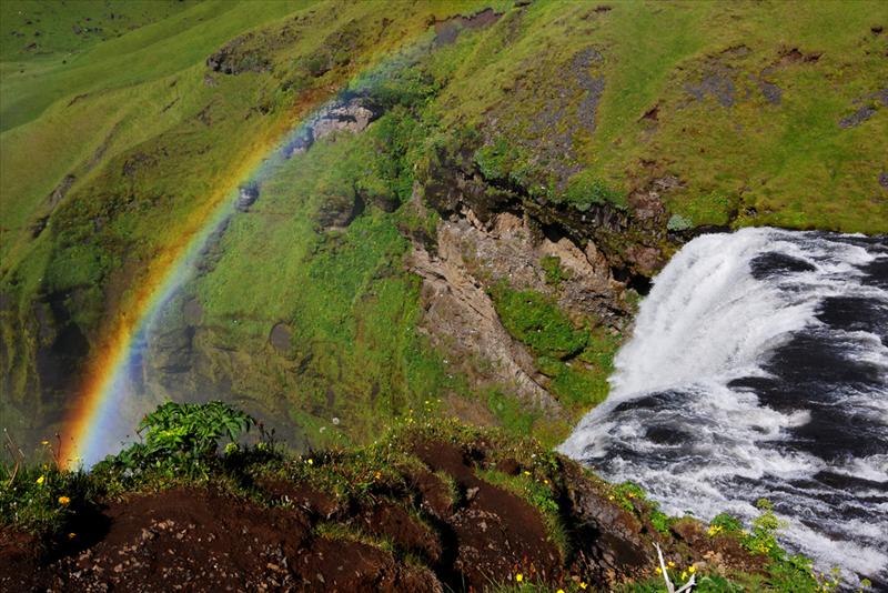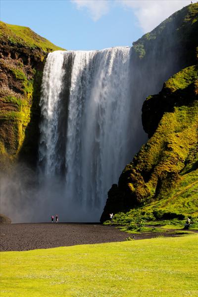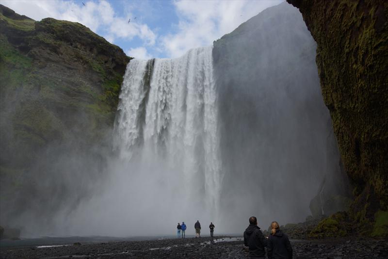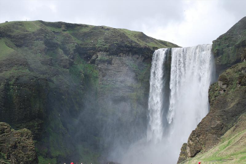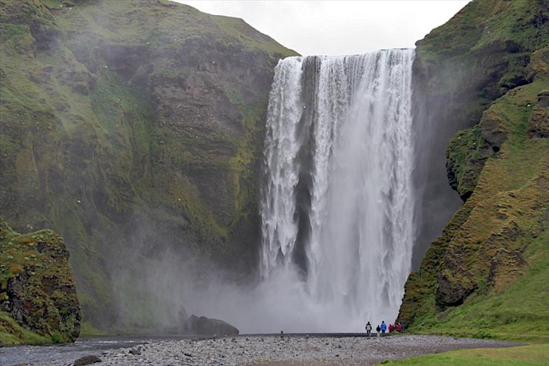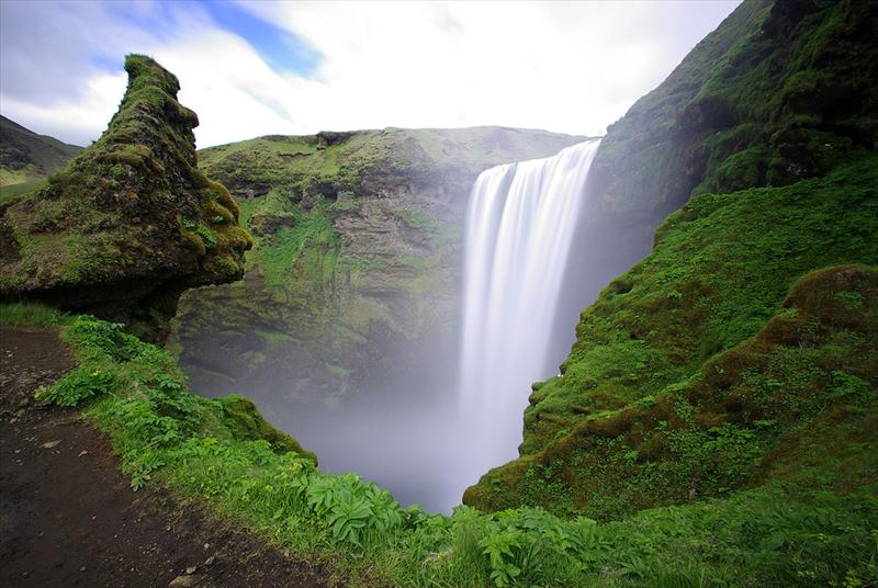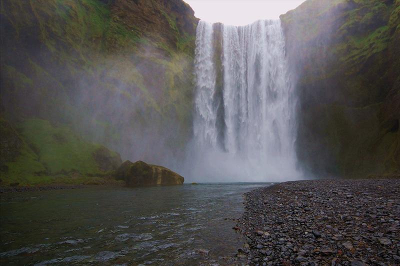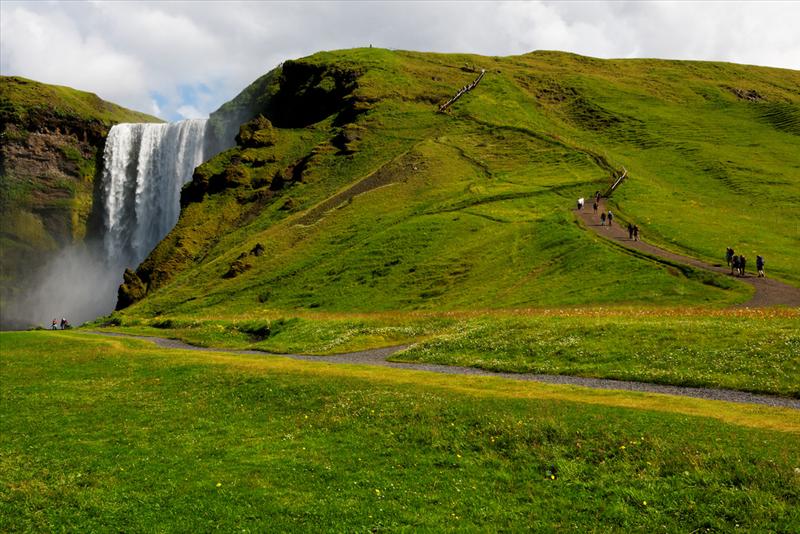 Visitors can walk right up to the base of the waterfall and experience the immense power of nature from close range. During summer, the spray is often heavy, and on sunny days vibrant rainbows frequently appear in the mist, making Skógafoss a favorite location for photographers.