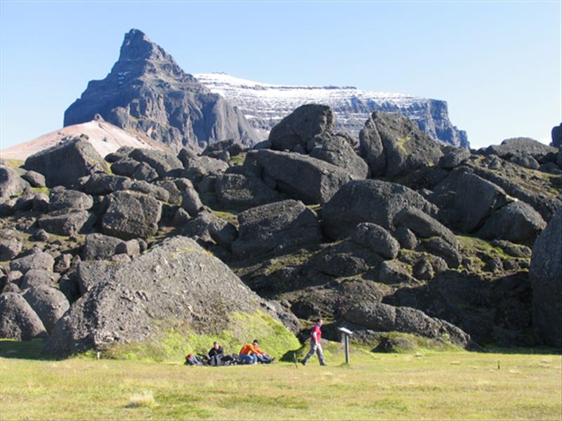 Yfir öllu þessu gnæfa Dyrfjöllin, ekki síður tignarleg héðan að sjá en úr Borgarfirði. Enginn verður svikinn af því að eyða hér einni dagstund eða jafnvel fleirum.