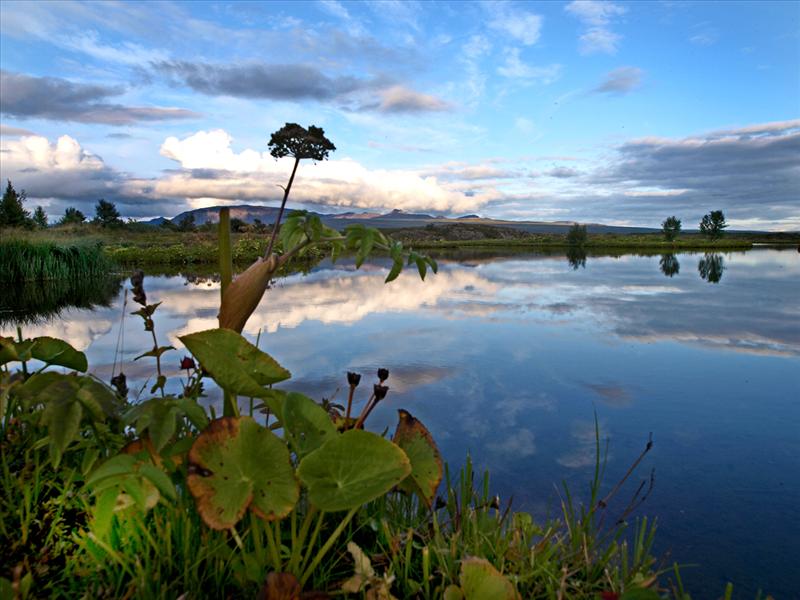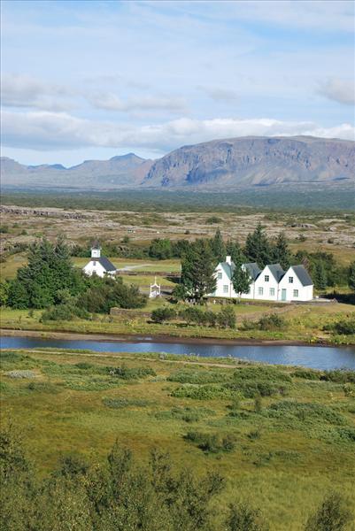 Þingvellir are grassy plains located north of Þingvallavatn, along the banks of the Öxará river, which flows across the plains and into the lake. Þingvallavatn is the largest natural lake in Iceland, and its surroundings are characterized by wide open landscapes and exceptional natural beauty. Þingvellir are part of Þingvellir National Park, which was established in 1928 and includes the plains and their immediate surroundings.