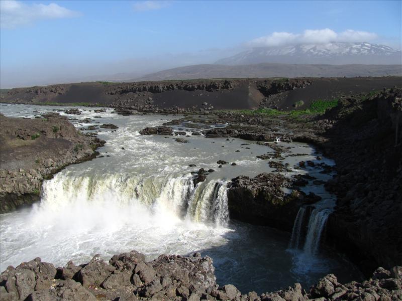 located east of the Merkuhraun lava field in South Iceland. The waterfall