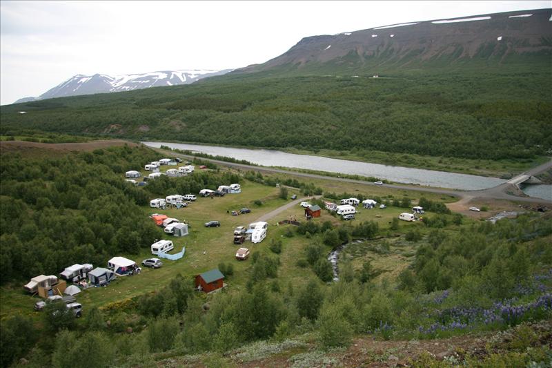 The camping site Systragil is conveniently situated for excursions and sighseeing tours around the north of Iceland. The valley of Flateyjardalur, the parsonage Laufás (an old farmhouse, built in the traditional style of the 18th century), Goðafoss (the Waterfall of the heathen Gods of old), are all a short distance away. Lake Mývatn is about 60 kilometres away and the town of Húsavík some 90 kilometres away.