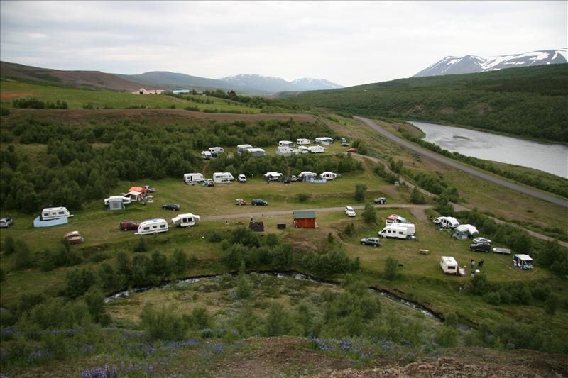 The swimmingpools at Stórutjarnir and Illugastaðir are a short distance away. There is a small shop across the bridge in Vaglaskógur and the golf course at Lundur is close by. There are marked hiking trails above the campingsite and in Vaglaskógur. The campingsite is situated in a lush, sheltered spot with an abundance of edible berries and mushrooms in the mountain in autumn.